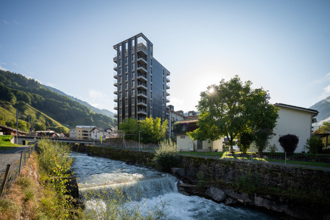 Vor Kurzem wurde das Mühlegebäude in Grüsch im Prättigau umgebaut: Im ehemaligen Hauptgebäude und dem Getreideturm entstanden 52 Wohnungen. Rück-, Um- und Neubau erfolgten gemäss den DGNB-Standards. Wir sprechen mit den Gutgrün-Verwaltungsräten Michael Zindel und Architekt Michael Schumacher über Projektallianzen und Ausbaustandards.